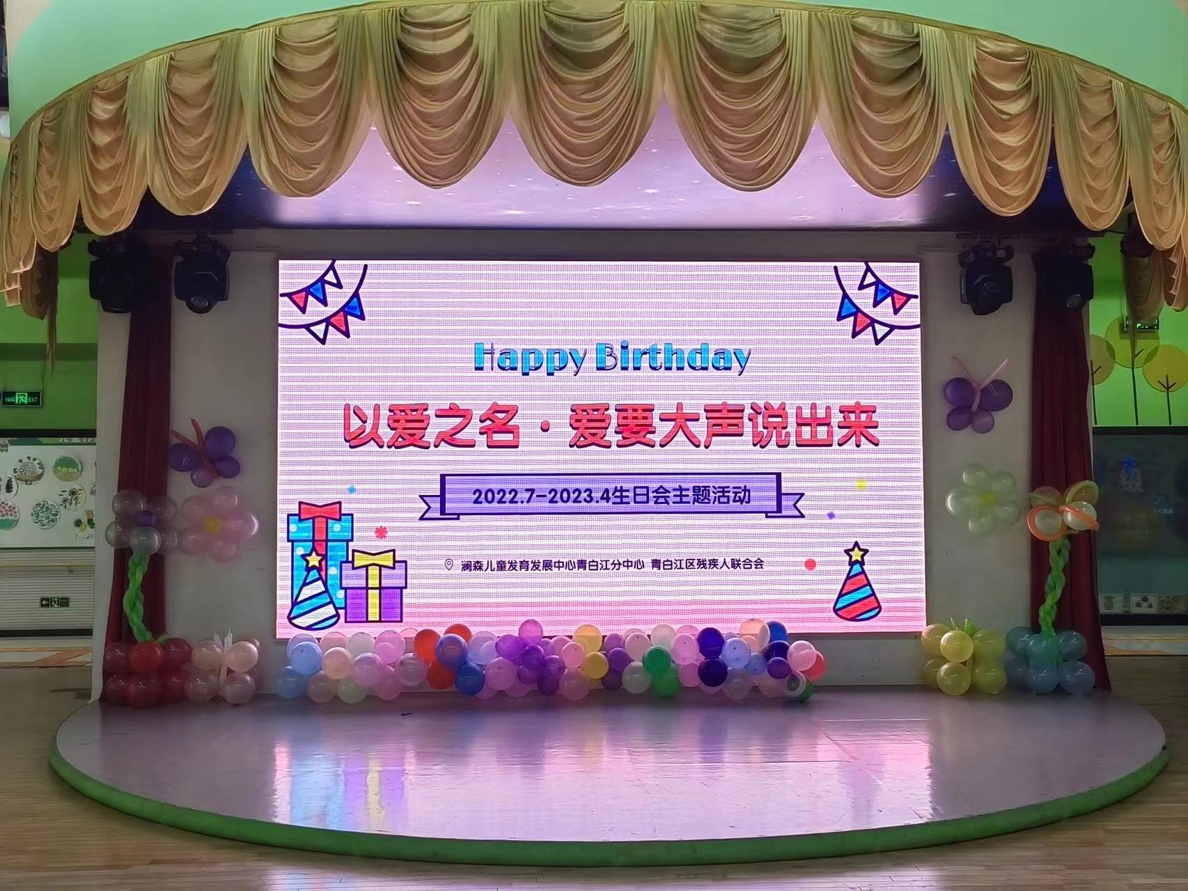 2024年10月31日下午两点,十月的最后一天,青白江区残疾儿童康复教育中心一楼众艺空间的大舞台是属于澜森青白江分中心、博达幼儿园以及甜蜜