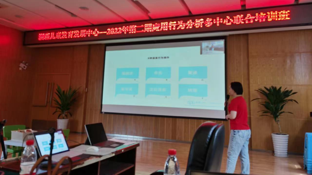 本次多中心联合培训活动一共分三期,在今天的第一期培训中,主讲老师们向大家讲解了应用行为分析的基本原理、辅助及辅助退出;语言行为操作、先备技能及配合度训练;行为塑造和连锁;命名教学方法讲解和实操展示;基于前事的问题行为解决方法;以及命名项目实操练习、抽查展示这一系列知识点。